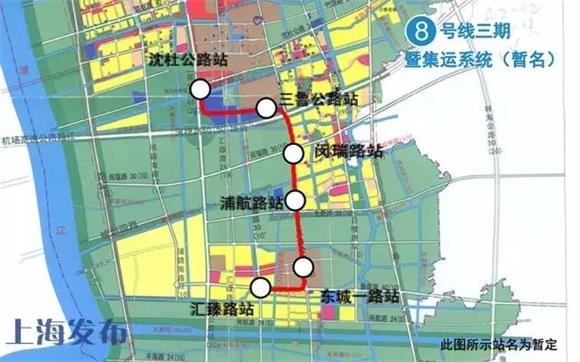 8號線(xiàn)三期自二期終點(diǎn)站沈杜公路站至匯臻路站,全長(cháng)6.6公里,車(chē)站6座。目前車(chē)站已全部封頂。(8號線(xiàn)三期與以往軌道交通相比,有兩項主要創(chuàng )新,一是系統制式新:采用高度集成的APM膠輪路軌系統;二是功能定位新:是中運量城市末端客流收集系統,為大運量軌道交通系統的補充。主要功能是穿梭運營(yíng)于閔行區浦江鎮區域,與8號線(xiàn)換乘接駁運營(yíng)。因此8號線(xiàn)三期的線(xiàn)路命名將與上海既有軌道交通線(xiàn)路名稱(chēng)有所不同,具體線(xiàn)名目前正在研究過(guò)程中。)